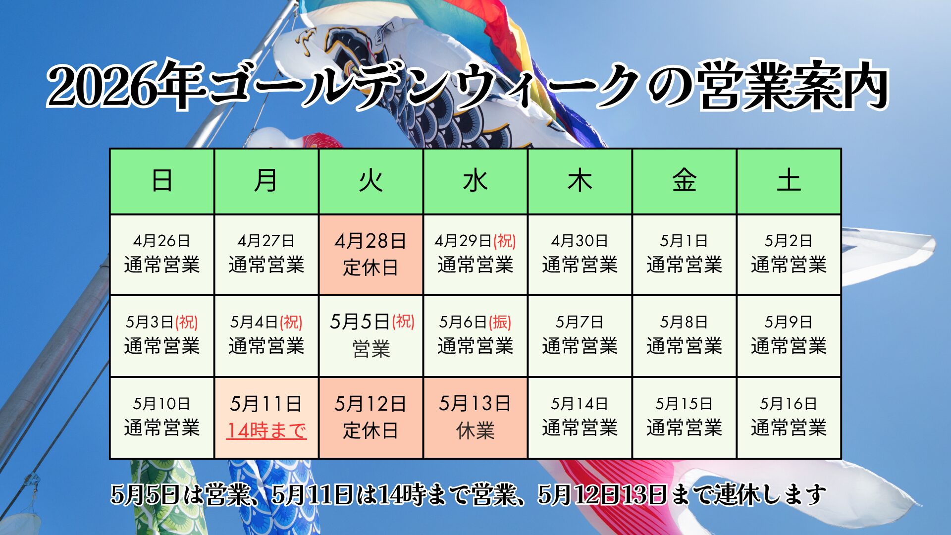 ・5月12日(火)・13日(水)は連休とさせていただきます